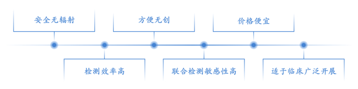 血清肿瘤标志物检测是迄今为止发现早期无症状肿瘤的最主要途径之一,可先于X线、超声、CT、MRI或PET-CT等物理检查发现肿瘤,具有多方面的检测优势: