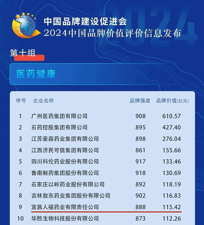 2024中国品牌价值榜发布 宜昌人福药业品牌价值再创新高
