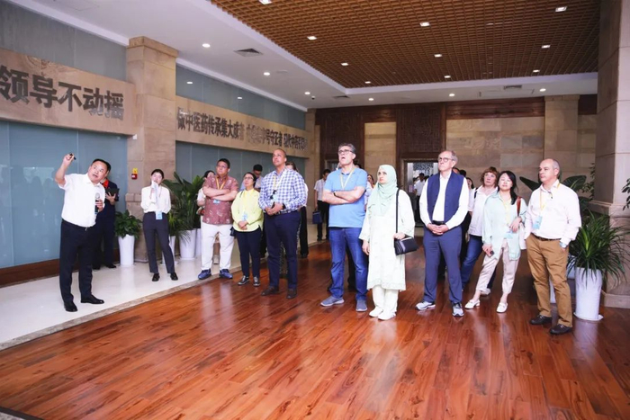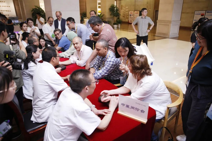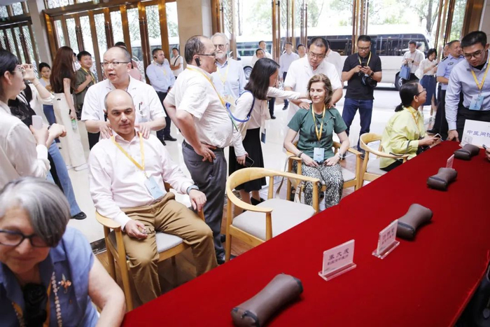 在观赏国家级非物质文化遗产桐君阁传统丸剂的精彩泛丸表演时,使节们对中药丸剂的传统制作工艺惊叹不已,有的还现场亲自品尝。此外,代表团成员还亲身感受了中医把脉的神奇,多位使节争相让中医专家把脉问诊,对其精湛医术赞不绝口。体验过中医推拿理疗后的使节们更是直呼“舒适”“轻松”。