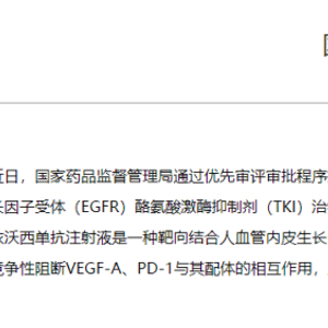 5月24日,据NMPA官网显示,康方生物的依沃西单抗(AK112/Ivonescimab)通过优先审评审批程序获批上市,用于联合培美曲塞和卡铂,用于经表皮生长因子受体(EGFR)酪氨酸激酶抑制剂(TKI)治疗后进展的EGFR基因突变阳性的局部晚期或转移性非鳞状非小细胞肺癌(NSCLC)患者的治疗。