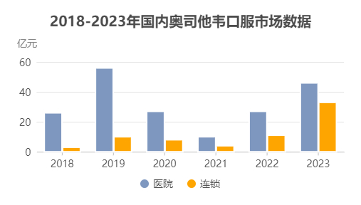 随着近两年流感的大规模流行,奥司他韦的市场需求大幅提升,根据米内网数据显示:2023年国内奥司他韦口服产品医院与连锁的总体市场容量为80亿元。