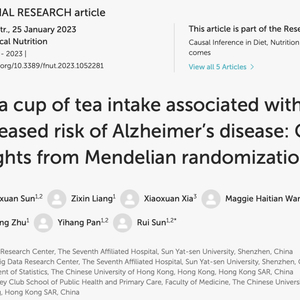 [1]Sun Y, Liang Z, Xia X, Wang MH, Zhu C, Pan Y, Sun R. Extra cup of tea intake associated with increased risk of Alzheimer's disease: Genetic insights from Mendelian randomization. Front Nutr. 2023 Jan 25;10:1052281. doi: 10.3389/fnut.2023.1052281. PMID: 36761219; PMCID: PMC9905237.
