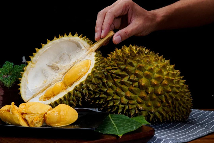 拿起榴莲感受其重量,成熟的榴莲通常比较沉重,说明里面含有较多的果肉和果汁。如果榴莲感觉较轻,可能意味着果肉较少或不够成熟。