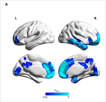 经完全调整的结果发现,累积BMI越大,脑实质和灰质(GM)相对体积越小,脑脊液(CSF)相对容积越大。具体来说,顶部与底部三分位数相比,脑实质体积缩小8.99 ml,灰质(GM)体积缩小7.49 ml,脑脊液(CSF)增大8.99 ml。体素形态学分析显示,显著的灰质(GM)萎缩主要发生在额叶、颞叶和前扣带回。而累积BMI与白质(WM)或海马的相对体积之间没有明显关联。