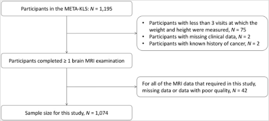 META-KLS研究参与者的特点是自2006年以来进行了长期随访,并且自2020年以来接受了一次神经影像学检查。截至2022年9月,共有1,195名参与者完成了一次神经影像学检查。