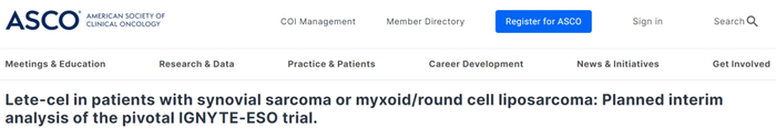 结果显示,总体ORR为40%(包括2例CR,16例PR),其中滑膜肉瘤和MRCLS患者的ORR分别为39%和41%。中位反应持续时间为10.6个月。在该研究中,不良事件与先前观察到的一致。研究人员认为,该研究进一步支持了Lete-cel作为晚期滑膜肉瘤和MRCLS疗法的潜力。