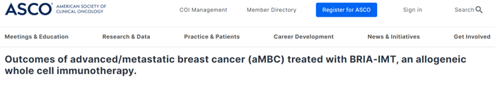 Bria-IMT方案是一种基于异体全细胞免疫疗法,可刺激患者的免疫系统诱导靶向杀死癌细胞。根据ASCO官网介绍,经皮内照射Bria-IMT的乳腺癌细胞会分泌GM-CSF,并在HLA-I和II分子上呈递肿瘤相关抗原(TAAs),直接刺激抗肿瘤免疫。PD-1免疫检查点抑制剂(CPI)进一步刺激T细胞并与SV-BR-1-GM协同作用。入选口头报告的是评估该产品结合CPI,治疗既往经过多次治疗(包括ADC和CPI治疗失败)的晚期/转移性乳腺癌的疗效和安全性。