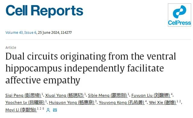 东南大学生命科学与技术学院谢维教授团队揭示动物本能情绪共情行为通过海马双环路调控