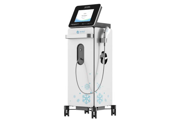 ■低温冲击镇痛仪采用神经性低温刺激技术,通过喷枪喷射出高压超低温的CO₂,直接作用于治疗部位,干冰迅速升华带走大量的热,迅速降温,使渗出液被再吸收并通过静脉和淋巴系统移除,达到辅助治疗和缓解疼痛、肿胀的目的。