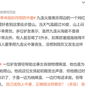 6月9日在南京和镇江交界的九连尖一女孩徒步登山时中暑晕倒虽经抢救,仍不幸离世