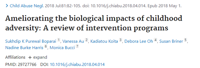 [3] Purewal Boparai SK, Au V, Koita K, Oh DL, Briner S, Burke Harris N, Bucci M. Ameliorating the biological impacts of childhood adversity: A review of intervention programs. Child Abuse Negl. 2018 Jul;81:82-105. doi: 10.1016/j.chiabu.2018.04.014.