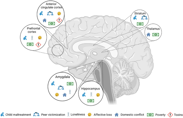 研究认为,大脑具备可塑性,因此能够在人的一生中不断改变,甚至重组其结构和功能。影响大脑发育和功能的一个关键因素就是个体所处的环境。环境中的不利事件,即逆境,可能对大脑产生深远的影响。这些逆境包括童年时期受到虐待、同伴欺凌、被孤立、关怀缺失、家庭冲突、贫困和接触到环境中的毒素等各种情况。