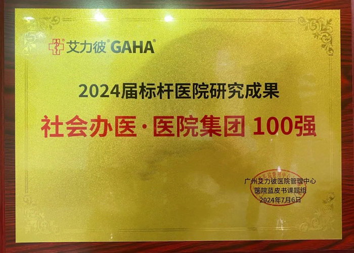 健嘉医疗荣获2024届社会办医标杆集团100强