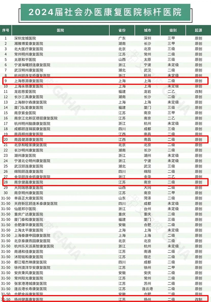 2024届社会办医康复医院标杆医院 50 强