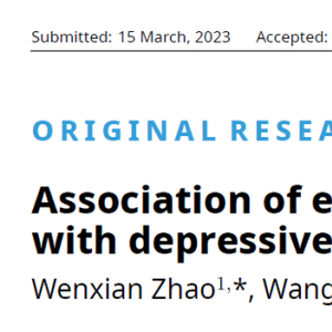 1. Wenxian Zhao, Wang Li, Jianjun Yin, Shulei Chen. Association of eating rate and post-dinner snacking with depressive symptoms in Chinese adult men. Journal of Men's Health. 2023. 19(11);34-40.