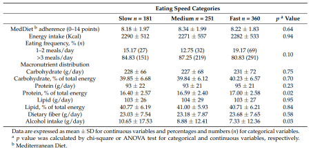 3. Paz-Graniel I, Babio N, Mendez I, Salas-Salvadó J. Association between Eating Speed and Classical Cardiovascular Risk Factors: A Cross-Sectional Study. Nutrients. 2019;11(1):83. Published 2019 Jan 4. doi:10.3390/nu11010083