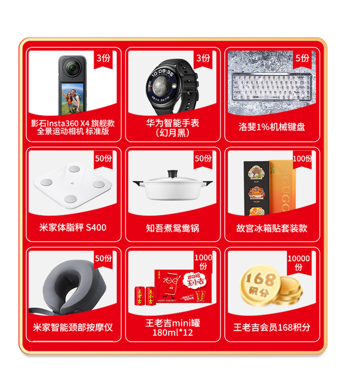 新用户注册会员即可参与活动,每位用户每天首次挑战成功即可参与抽奖活动,有影石Insta360 X4 旗舰款全景运动相机 标准版、华为 WATCH 4  智能手表(幻月黑)等丰厚奖品等你带回家。