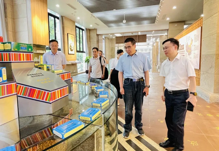 鞠明兵(右二)参观国药太极品牌文化馆