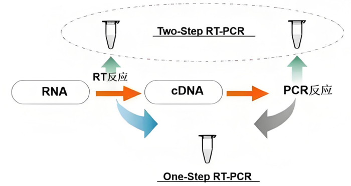 RT-PCR其操作方法分为两种,即一步法和两步法。一步法RT-PCR,逆转录同PCR扩增结合在一起,即cDNA合成与PCR扩增反应在同一管Buffer及酶中进行,一步完成。两步法RT-PCR,RNA首先在反转录酶的作用下生成cDNA,再以cDNA为模板进行PCR扩增,分成两步进行。