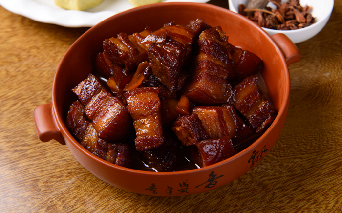 再配上一碗寿仙谷红烧土猪肉(不吃饲料,用有机米糠、药渣喂养长大),猪肉鲜嫩、肥而不腻,馒头香甜、绵软筋道,让你食指大动,胃口大开。