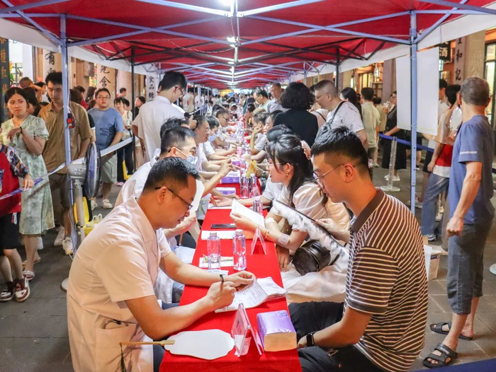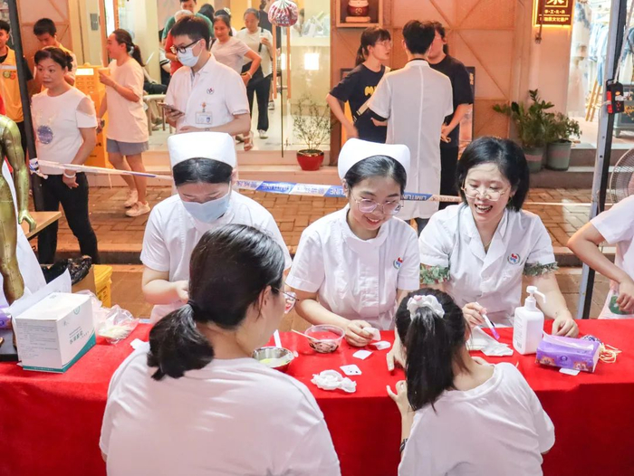 活动不仅依次设置了传统中医疗法(含非遗项目)体验区、中药材辨识区、中医药科普宣传区、眼病防治专区等12个专区,还邀请了50多位省、市名中医专家为市民提供把脉问诊、健康咨询等免费惠民服务,把高水平的中医诊疗服务送到夜市,既加强医生与市民之间的近距离沟通,也在一定程度上消解部分市民“看病难”的畏惧心理。