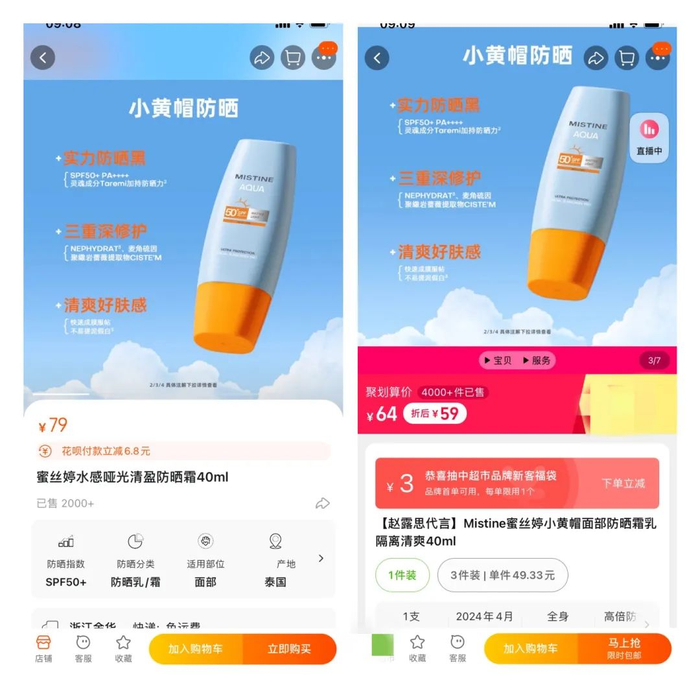蜜丝婷小黄帽防晒霜¥79,下单立减40元!