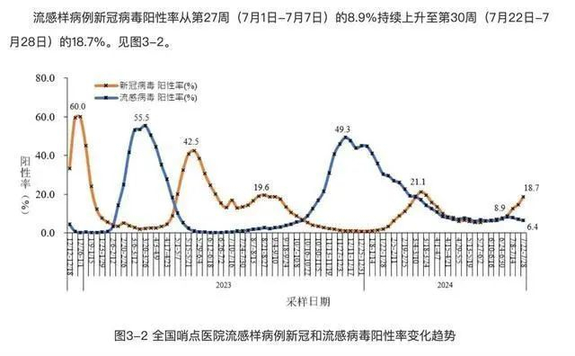 中国疾病预防控制中心公布的“7月份全国新型冠状病毒感染疫情情况”数据显示:流感样病例新冠病毒阳性率,从第27周(7月1日-7月7日)的8.9%,持续上升至第30周(7月22日-7月28日)的18.7%。