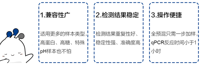 ResiDNA Precise系列采用大预混思路,将检测所需的引物、探针、ddH2O与qPCR Mix提前预混,仅需加入样本即可进行检测,降低加样误差的同时减少试剂损耗和外源污染,提高实验效率。