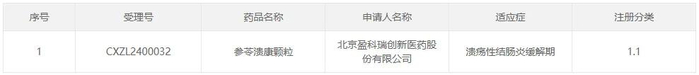 盈科瑞的中药1.1类新药参苓溃康颗粒用于治疗溃疡性结肠炎,该产品的临床申请于2024年6月12日获得CDE承办受理,8月19日获得临床试验默示许可。