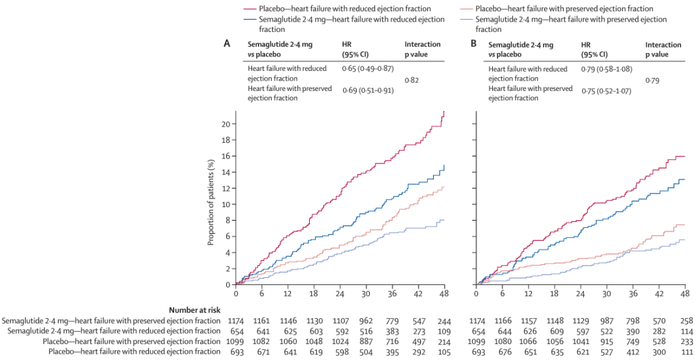 在SELECT试验所招募的患者中,其中有4286名(24.3%)在入组时具有动脉粥样硬化性疾病与心力衰竭病史:其中的2273名(53.0%)为HFpEF,1347名(31.4%)为HFrEF,另有666名(15.5%)患有未分类的心力衰竭。有和没有心力衰竭病史患者的基线特征相似。