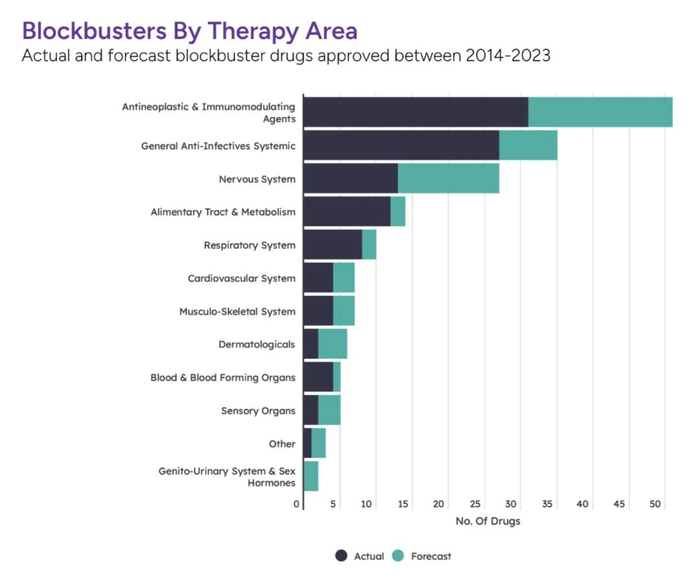 在2014年至2023年FDA批准的487种药物中,Evaluate Pharma预测,39%有望成为“重磅炸弹”。