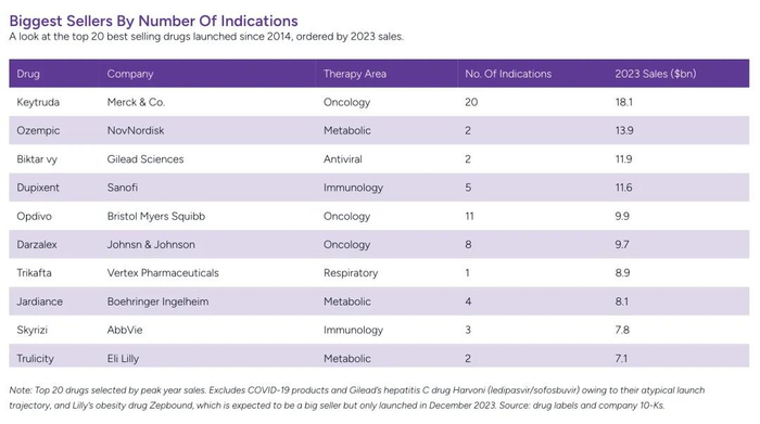 对畅销药物的分析,强调了扩大适应症在推动销售额增长方面的价值。但同时,这也提出一个问题,即该模式未来是否会以同样的节奏持续下去。