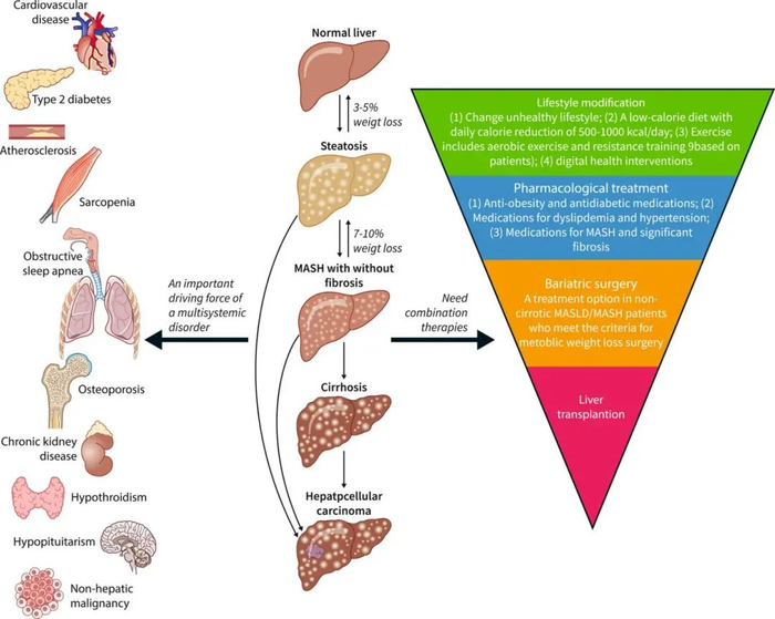 Fig.2 MASLD as an important driving force of multisystemic disorders and its management[5].