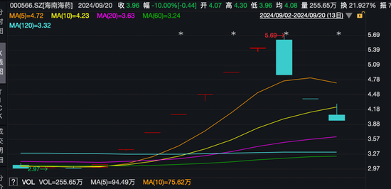 最近一段时间,海南海药(000566.SZ)的股价就像坐上了过山车,中秋节前6个涨停板后,紧接着节后就连收3个跌停。