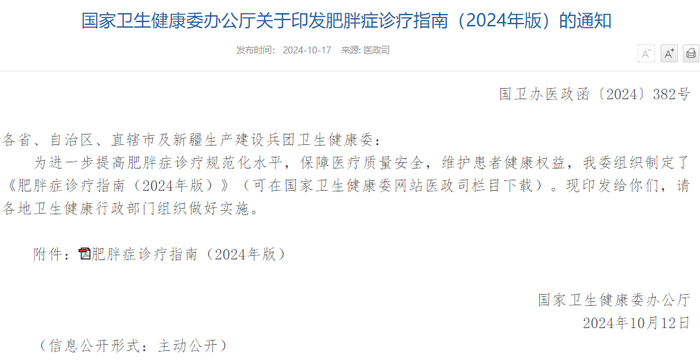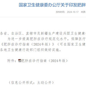 近日,国家卫健委印发肥胖症诊疗指南(2024年版)。
