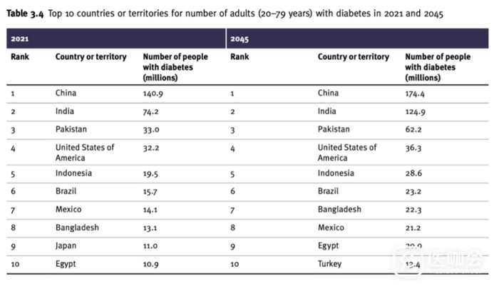 且数据显示,2021年,20-79岁人群中,糖尿病患者人数最多的国家是中国、印度和巴基斯坦。预计到2045年,前三名的排名将保持不变。我国2021年20-79岁成年人糖尿病患者总数、未被诊断糖尿病患者数量、因糖尿病导致的死亡人数均排名全球第一。因此,对糖尿病进行早期预防和有效治疗迫在眉睫。