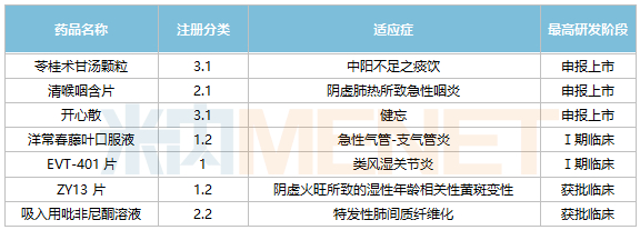 在中药新药方面,康恩贝的中药1.2类新药洋常春藤叶口服液已处于Ⅰ期临床研究阶段,用于治疗急性气管-支气管炎;中药1.2类新药ZY13片已获批临床,用于治疗湿性年龄相关性黄斑变性;中药2.1类新药清喉咽含片、中药3.1类新药开心散及苓桂术甘汤颗粒已提交上市申请,有望于2025年内获批上市。