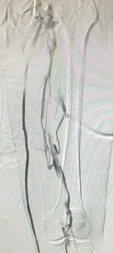 ▲造影血栓保护装置拦截到血栓