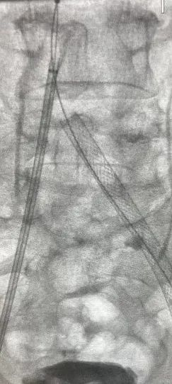 患者为老年男性,因左下肢肿胀疼痛入院,检查后确诊为左侧下肢髂股静脉急性血栓形成(DVT)。根据病情,拟行下肢深静脉血栓清除术和髂静脉支架植入术,同时计划在术中置入血栓保护装置,以预防术中血栓脱落引发的肺动脉栓塞(PE)。