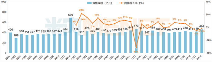2024年12月中国实体药店市场零售规模及变化趋势