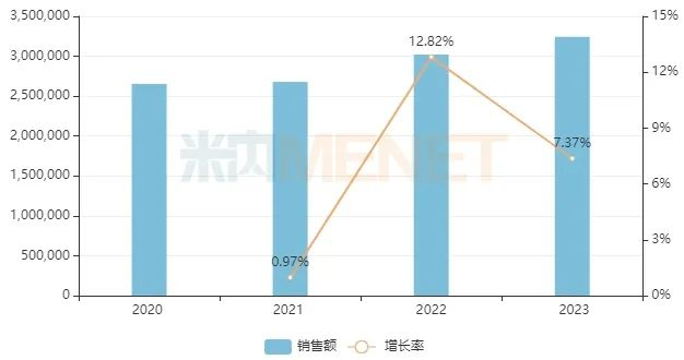 米内网数据显示,2019年清热解毒中成药在中国三大终端六大市场(统计范围详见本文末)销售额超过340亿元,2020年受疫情影响跌至265亿元,之后市场持续回暖,2022年重回300亿元台阶,2023年其销售额超过320亿元,同比增长约7%。