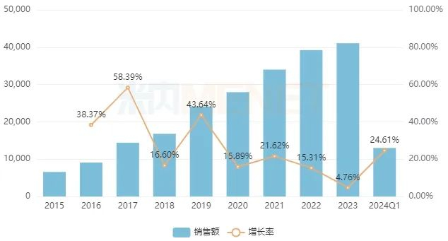 银黄滴丸具有清热、解毒、消炎的功效,适用于急慢性扁桃体炎,急慢性咽喉炎,上呼吸道感染等。目前国内有4家企业拥有银黄滴丸生产批文,其中维康药业龙头地位稳固,市场份额保持在99%以上。近几年来,维康药业的银黄滴丸在中国城市实体药店终端的销售额持续正增长,2023年突破4亿元,2024年第一季度接近1.3亿元。