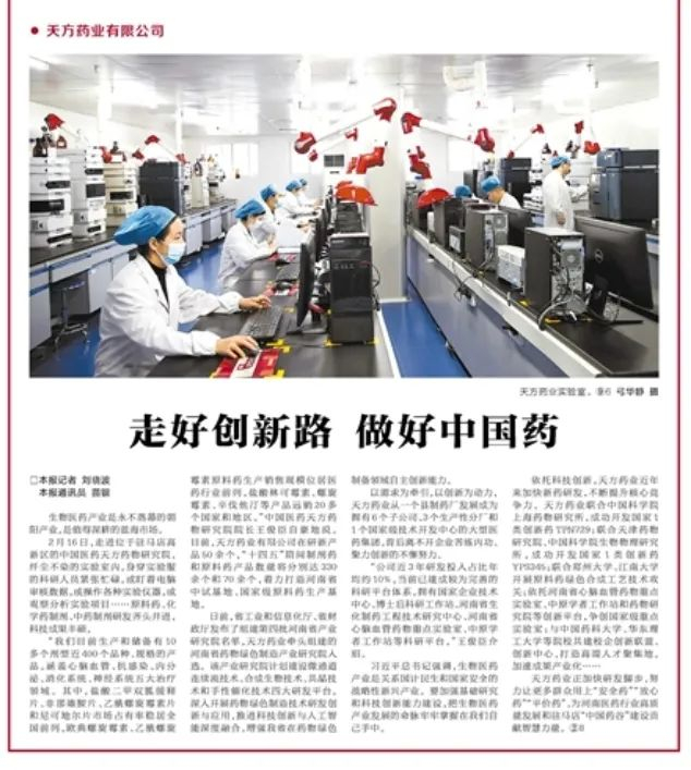 智药探索丨《河南日报》点赞天方药业走好创新路 做好中国药