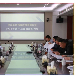 4月15日,亚太药业召开2025年第一次临时股东大会、第八届董事会第一次会议等系列会议,会议由副董事长黄小明主持,本次会议顺利完成董事会、监事会换届选举及聘任高级管理人员。