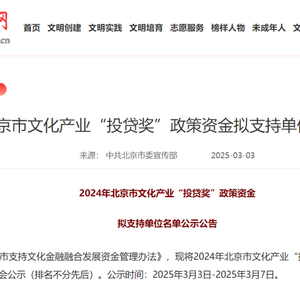 近日,中共北京市委宣传部拨付了2024年北京市文化产业“投贷奖”支持资金,中关村发展集团旗下中关村科技担保连续多年通过审核,此次更是获得满额奖励支持。