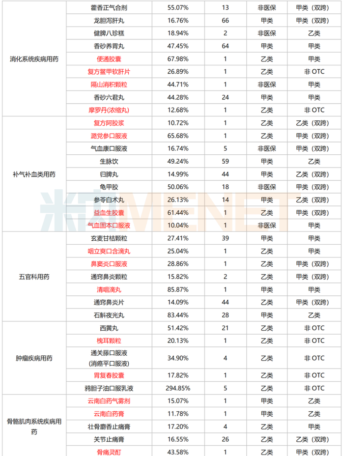 注:标红为独家品种(含独家剂型)