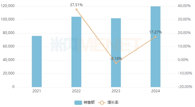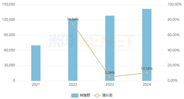 有28家药企在销的蒲地蓝消炎片具有清热解毒、抗炎消肿的功效,用于疖肿、咽炎、扁桃体炎等,2024年在中国零售药店终端的销售额接近12亿元,同比增长17.27%,顶替蓝芩口服液,拿下清热解毒中成药销冠宝座。从该产品企业排名看,云南白药稳居首位,吉林福康药业大涨97.18%紧接其后,特一药业大涨131%排位第三。
