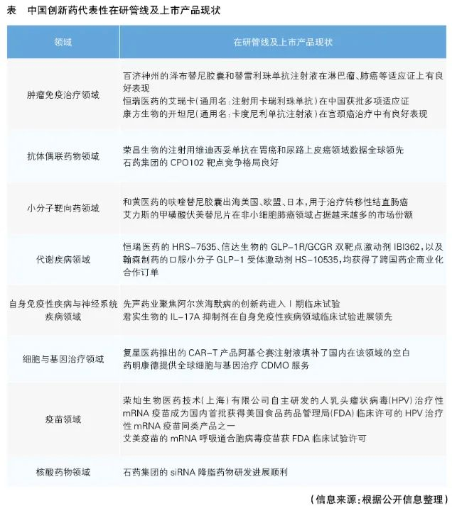 近年来,中国创新药企业在不同治疗领域和技术路线上展现出显著的专业化和差异化布局,不少管线及上市产品实现“中国新”乃至“全球新”(详见表)。