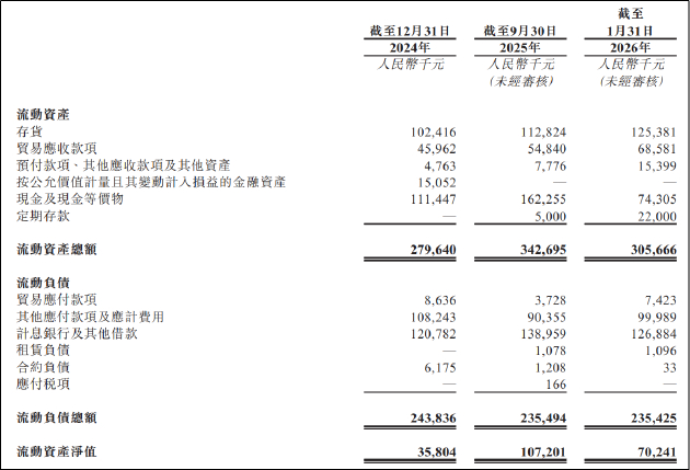 从资产负债情况看,截至2026年1月31日,公司计息银行及其他借款约1.27亿元,而现金及现金等价物及定期存款总额约1亿元,存在一定短期资金缺口。即便不考虑后续研发投入,仅维持现有运营规模,公司也面临不小的流动性压力。