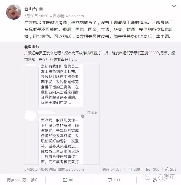 广发总部曾和员工在我微博上有一番争执。